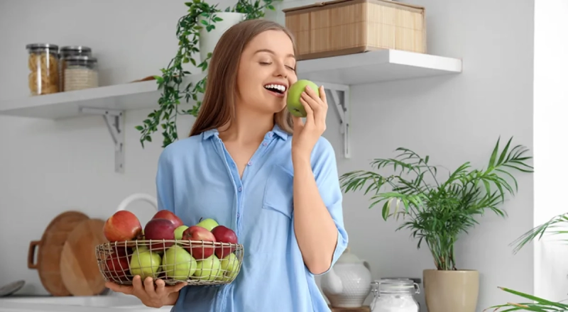 Главный секрет яблок «скрывается» в кожуре — именно там содержится клетчатка, которая дает быстрое и продолжительное чувство сытости. При этом энергетическая ценность фрукта очень низкая, в нем всего около 50 ккал на 100 г. Благодаря этому яблоки идеально вписываются в рацион тех, кто следит за весом.
