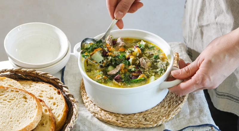 Классический картофель в борще стоит заменить на кабачки, шпинат, стебли сельдерея или зеленую фасоль. Вместо мяса тренер предложила взять нут, фасоль или киноа. Это не только снизит калорийность, но и сделает блюдо богаче по витаминам. А для кислинки рекомендуется добавить в суп лимонный сок или яблочный уксус.