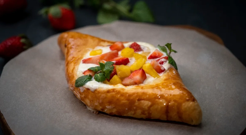 По словам дегустатора, на вкус хачапури с клубникой похож на творожный десерт. Сладкая масса внутри напоминает либо творог, либо густой йогурт с фруктами. Тесто тоже сладкое. А внутри «лодочки» — свежая клубника. Присыпан десерт сахарной пудрой.