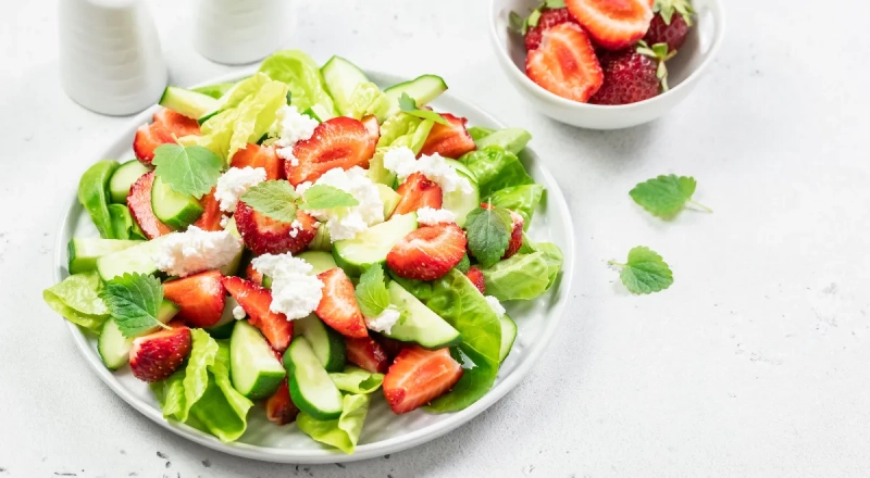 Эти сезонные плоды — огурец и клубника — безусловно хороши сами по себе. А что будет, если их соединить? Пользователи соцсетей отмечают, что такой салат получается просто отличным.