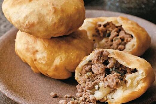 Смешайте в миске кефир, соль и масло. В просеянную муку добавьте соду и лимонную кислоту. Соедините сухие и жидкие ингредиенты, и замесите эластичное тесто. Уберите его в пакет и дайте немного отдохнуть. Для начинки измельчите лук и смешайте с фаршем, солью и перцем. В самом конце влейте кипяток для сочности. Разделите тесто на 20 частей и скатайте в шарики. Каждый из них раскатайте в лепешку, выложите начинку и сформируйте треугольник, оставив небольшое дырку в центре, отмечает канал «Готовим с Калниной Натальей«.