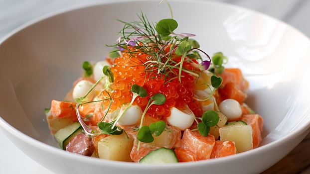 Салат — это не обязательно что-то хрустящее и зеленое как сопровождение к основному блюду. Шеф-повар Руслан Миронов дал рецепты салатов, которые легко превращаются в полноценный прием пищи. Они наверняка придутся по душе всем: не требуют сложных ингредиентов и долгой готовки, хорошо хранятся в контейнере и дают ту самую желанную сытость без тяжести. Отличная идея, чтобы заменить традиционный обед и при этом чувствовать себя легко.