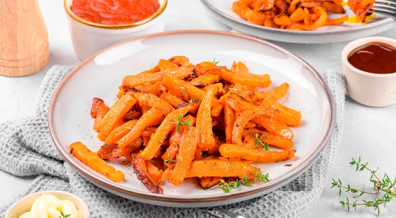 Многие любят не столько жарить или варить, сколько запекать батат — дольками или целиком. В таком виде овощ обретает хрустящую корочку и нежную мякоть. Сколько запекать батат в духовке, зависит от того, в каком виде вы готовить овощ. Целому батату требуется 40-50 минут при температуре 180–200 °С. А порезав его дольками, можно ускорить процесс — хватит 25-30 минут. Кстати, если вы запекаете батат для приготовления пюре — его следует завернуть в фольгу.